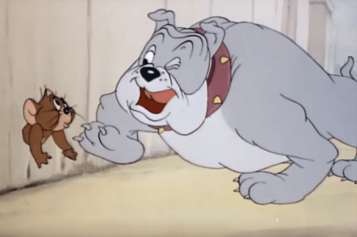The episode is called “The Bodyguard” and its plot is simple. Jerry rescues Spike from the pound. To repay his debt, Spike promises to always protect the mouse from his tormentor Tom. “Just whistle,” Spike promises, “and I’ll come to your rescue.” All’s well for the little mouse, until Tom tricks him into chewing a piece of glue-covered gum which renders him unable to whistle. As he tries to flee the cat’s tortures, he bumps into Spike - and you already know what happens next.